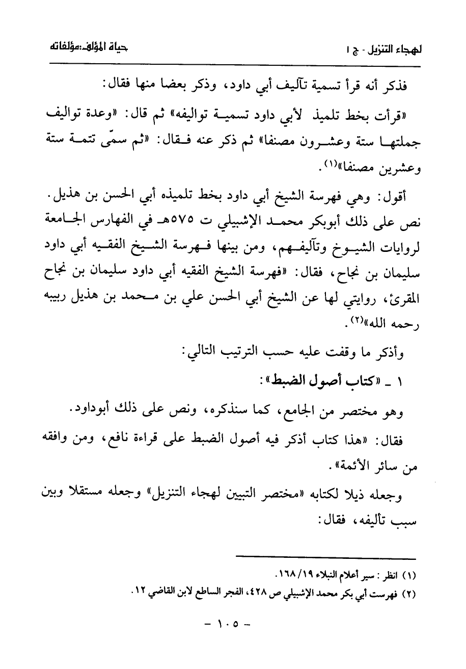 أقول: وهي فهرسة الشيخ أبي داود بخط تلميذه أبي الحسن بن هذيل.