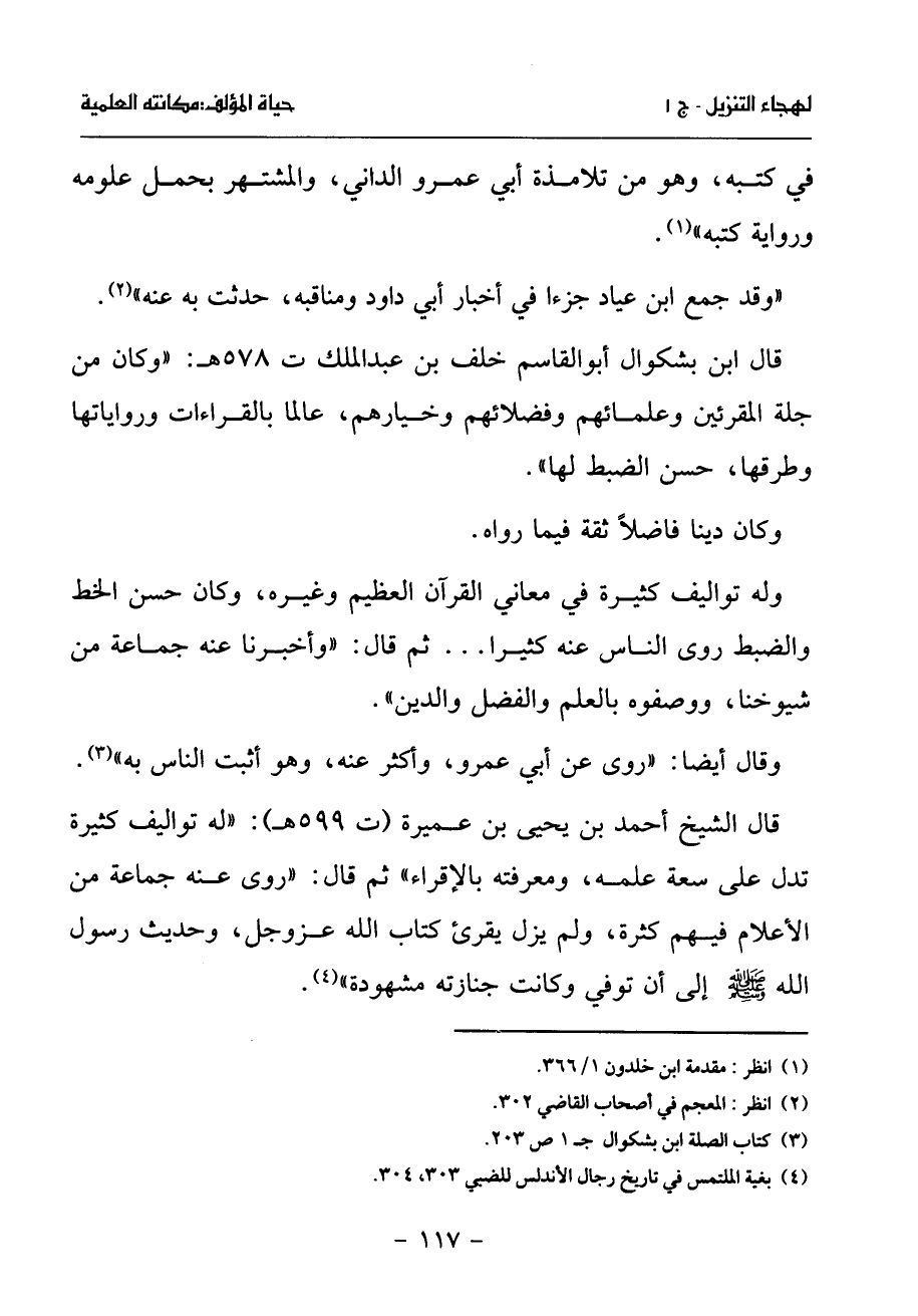 في كتبه، وهو من تلامذة أبي عمرو الداني، والمشتهر بحمل علومه ورواية كتبه» (¬1).