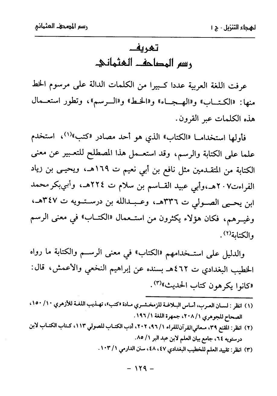 (¬2) انظر: المقنع 39، معاني القرآن للفراء 1/ 96، 202، أدب الكتاب للصولي 113، كتاب الكتاب لابن درستويه 64، جامع بيان العلم لابن عبد البر 1/ 85.