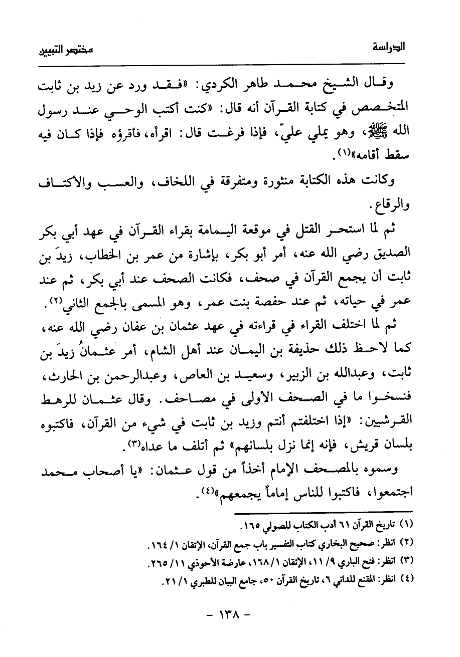 (¬4) انظر: المقنع للداني 6، تاريخ القرآن 50، جامع البيان للطبري 1/ 21.