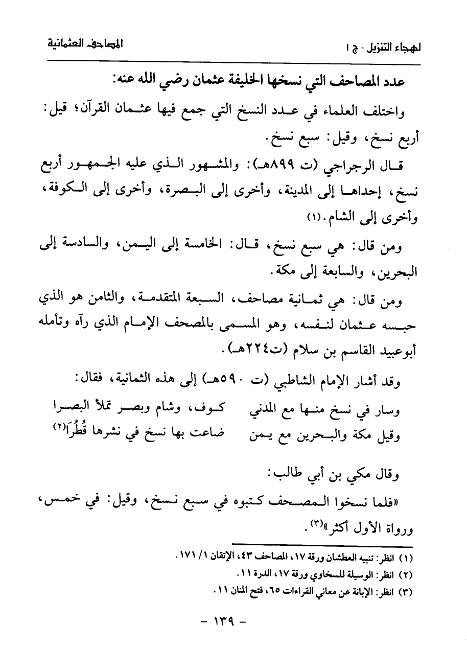 (¬1) انظر: تنبيه العطشان ورقة 17، المصاحف 43، الإتقان 1/ 171.