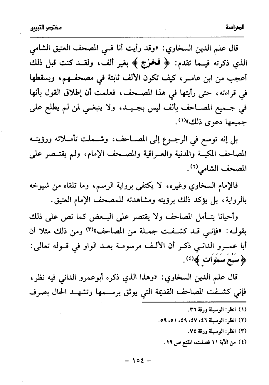 بل إنه توسع في الرجوع إلى المصاحف، وشملت تأملاته ورؤيته المصاحف المكية والمدنية والعراقية والمصحف الإمام، ولم يقتصر على المصحف الشامي (¬2).