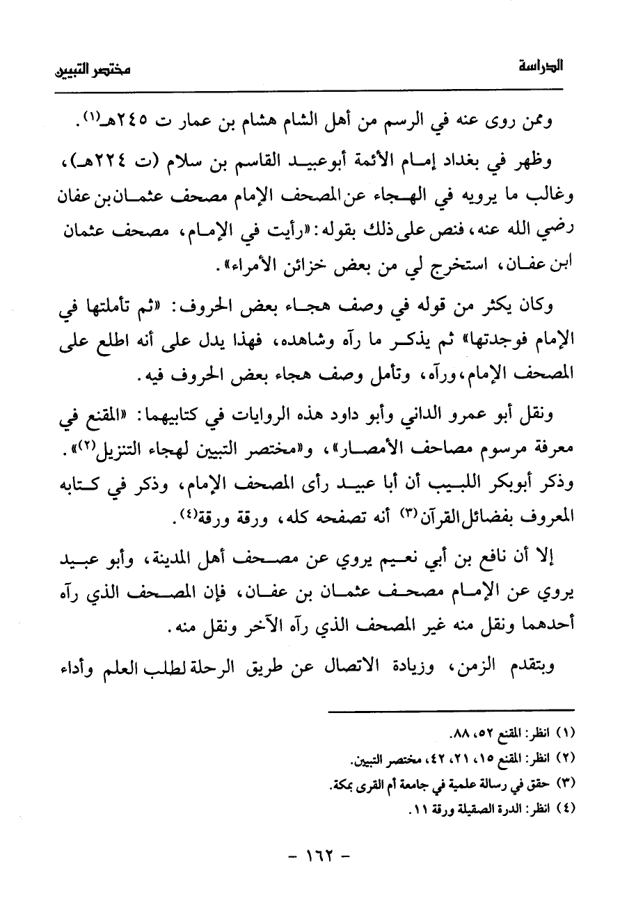 ونقل أبو عمرو الداني وأبو داود هذه الروايات في كتابيهما: «المقنع في معرفة مرسوم مصاحف الأمصار»، و «مختصر التبيين لهجاء التنزيل (¬2)».