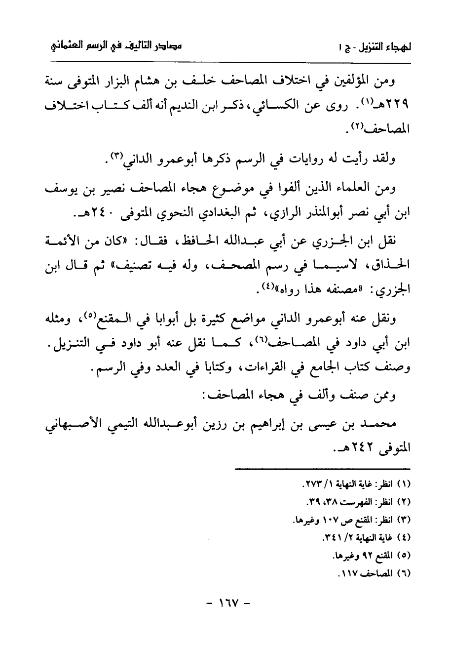 ونقل عنه أبو عمرو الداني مواضع كثيرة بل أبوابا في المقنع (¬5)، ومثله ابن أبي داود في المصاحف (¬6)، كما نقل عنه أبو داود في التنزيل.
