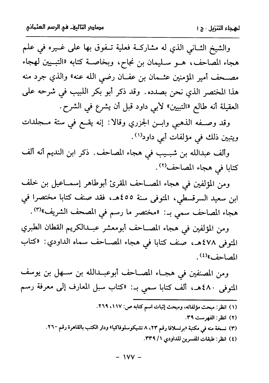 ومن المؤلفين في هجاء المصاحف أبو معشر عبد الكريم القطان الطبري المتوفى 478 هـ، صنف كتابا في هجاء المصاحف سماه الداودي: «كتاب المصاحف» (¬4).