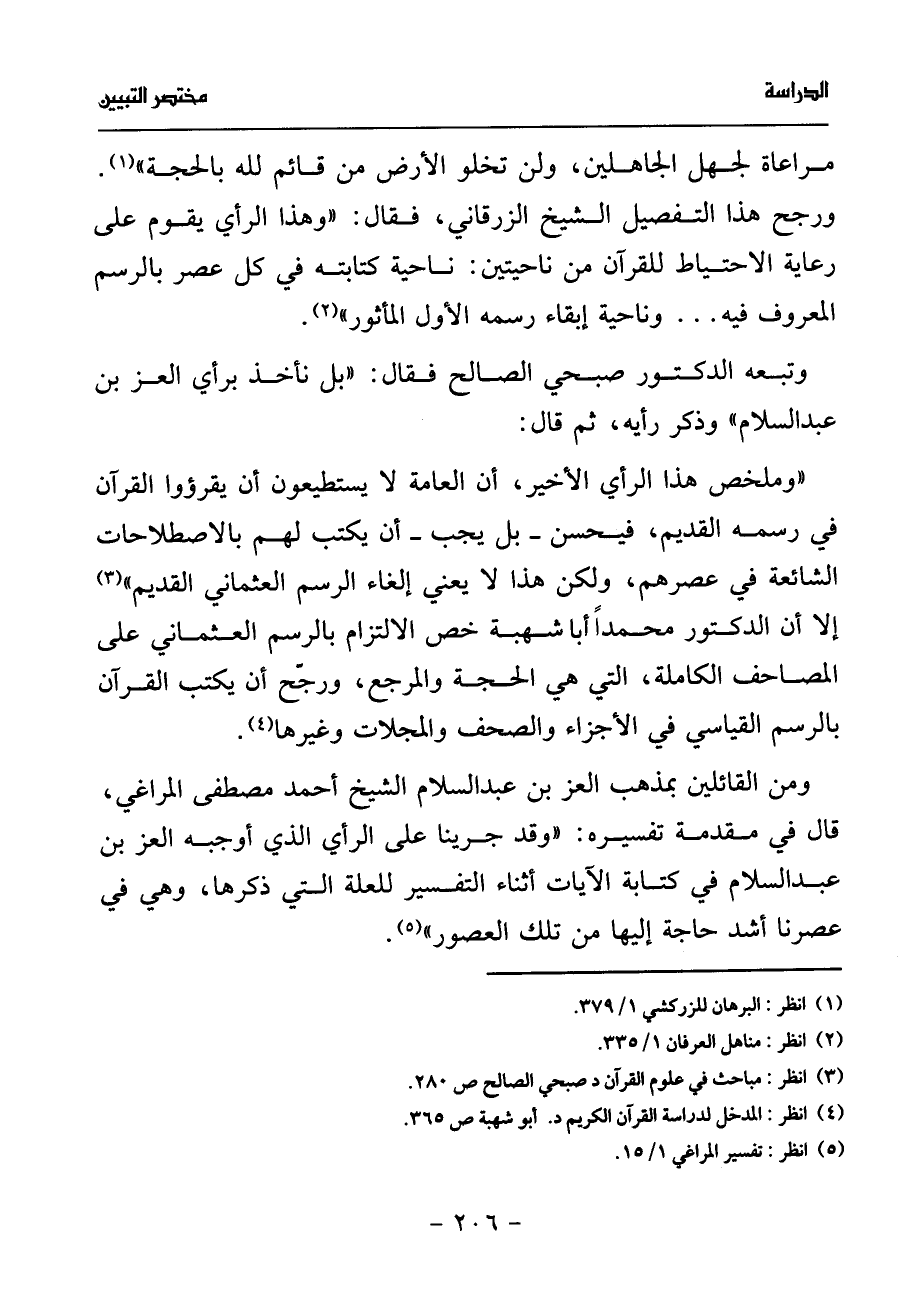 وتبعه الدكتور صبحي الصالح فقال: «بل نأخذ برأي العز بن عبد السلام» وذكر رأيه، ثم قال: