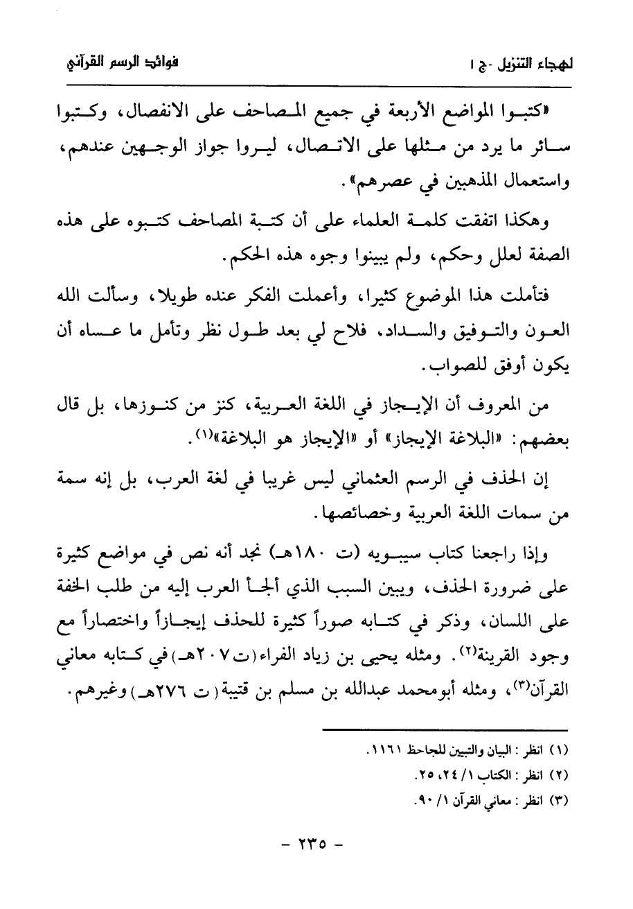 وهكذا اتفقت كلمة العلماء على أن كتبة المصاحف كتبوه على هذه الصفة لعلل وحكم، ولم يبينوا وجوه هذه الحكم.