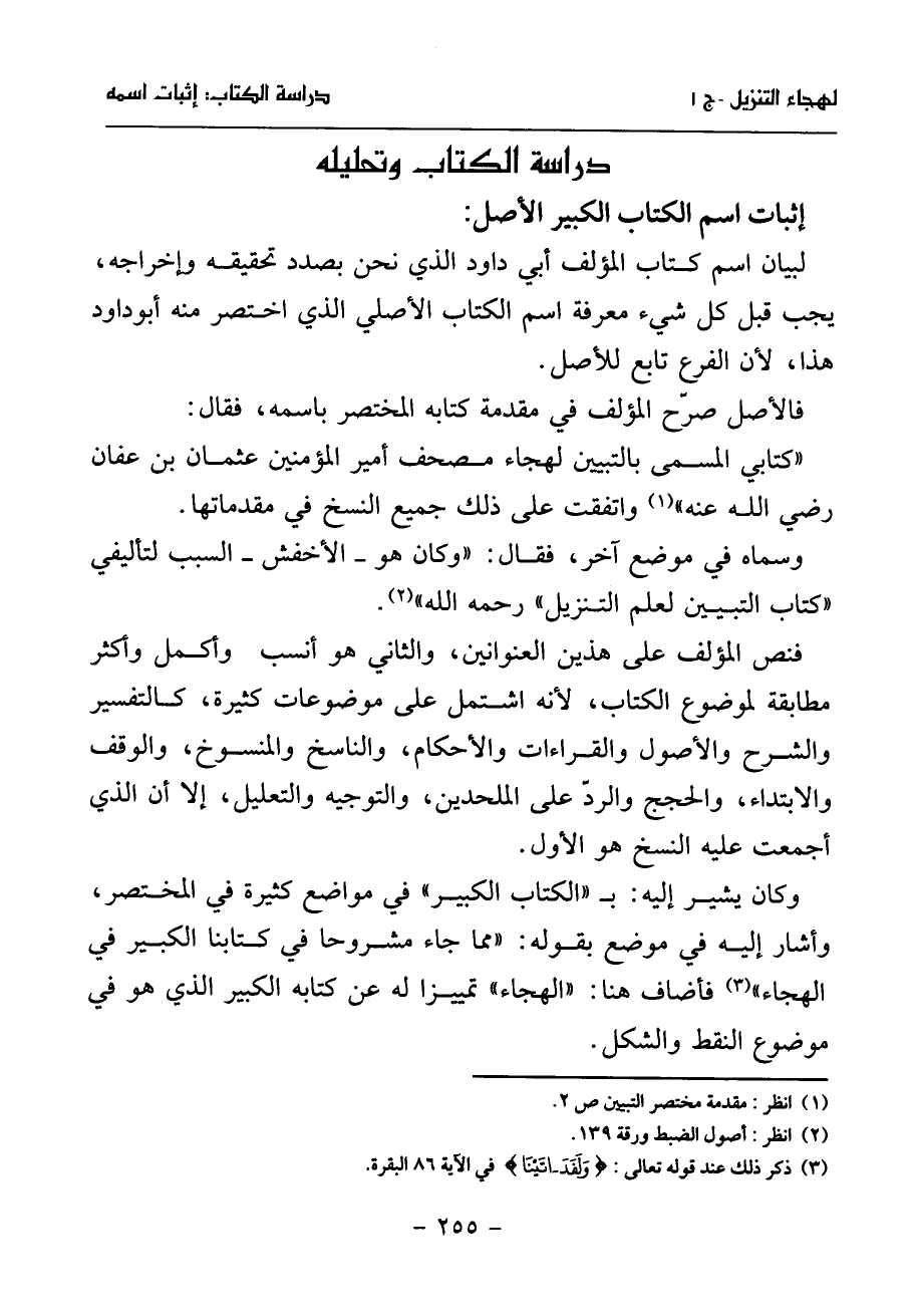 «كتابي المسمى بالتبيين لهجاء مصحف أمير المؤمنين عثمان بن عفان رضي الله عنه» (¬1) واتفقت على ذلك جميع النسخ في مقدماتها.