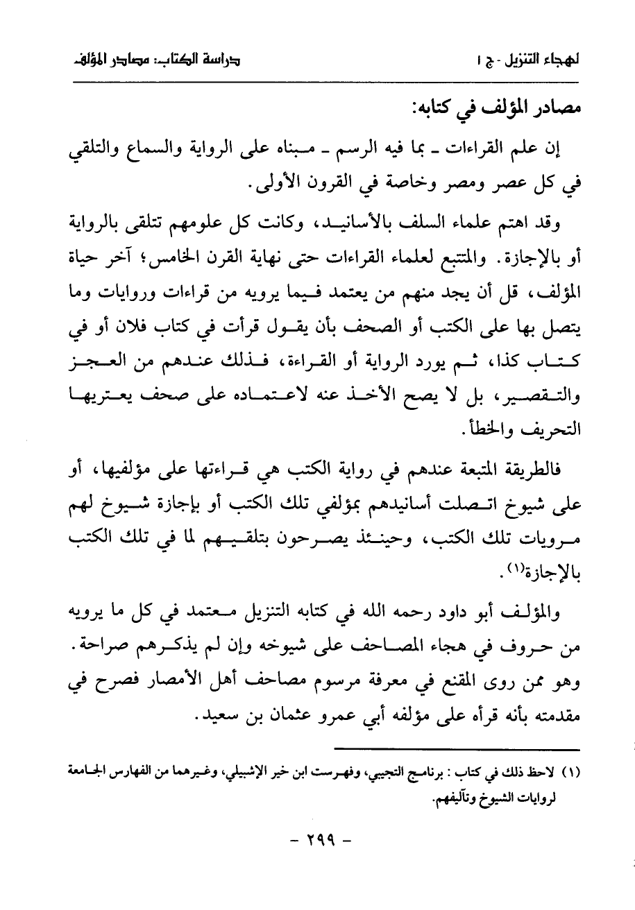 والمؤلف أبو داود رحمه الله في كتابه التنزيل معتمد في كل ما يرويه من حروف في هجاء المصاحف على شيوخه وإن لم يذكرهم صراحة.