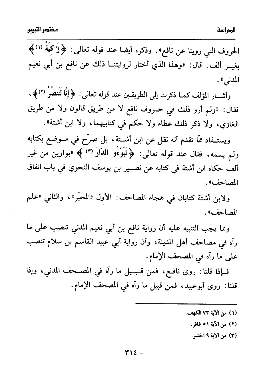 ومما يجب التنبيه عليه أن رواية نافع بن أبي نعيم المدني تنصب على ما رآه في مصاحف أهل المدينة، وأن رواية أبي عبيد القاسم بن سلام تنصب على ما رآه في المصحف الإمام.