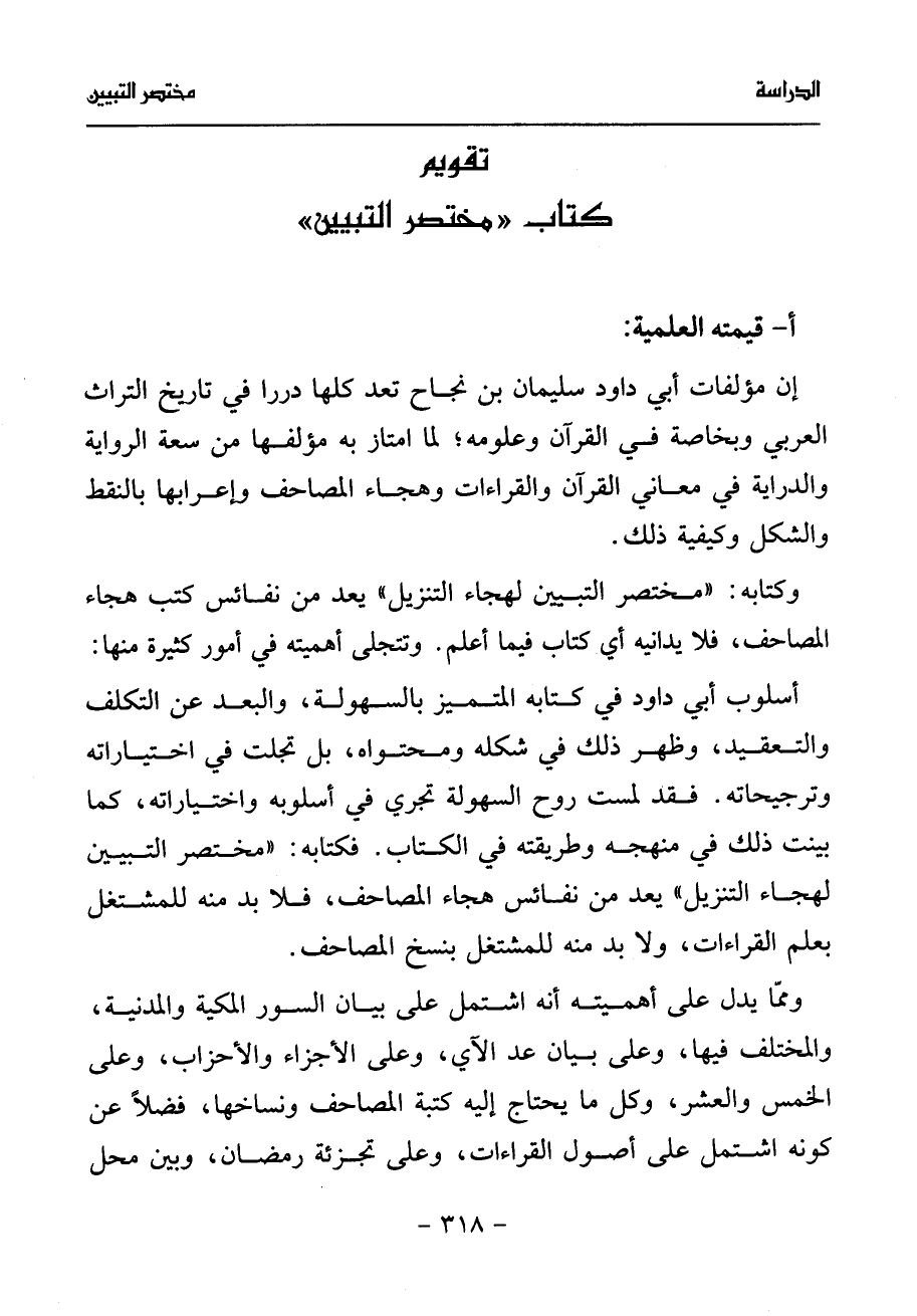 وكتابه: «مختصر التبيين لهجاء التنزيل» يعد من نفائس كتب هجاء المصاحف، فلا يدانيه أي كتاب فيما أعلم. وتتجلى أهميته في أمور كثيرة منها: