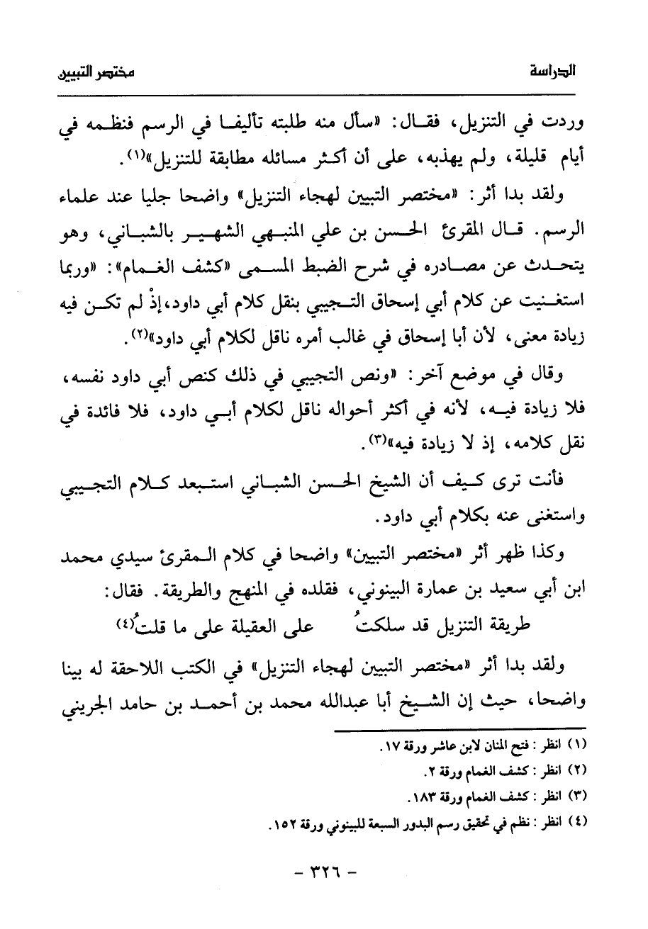 (¬4) انظر: نظم في تحقيق رسم البدور السبعة للبينوني ورقة 152.