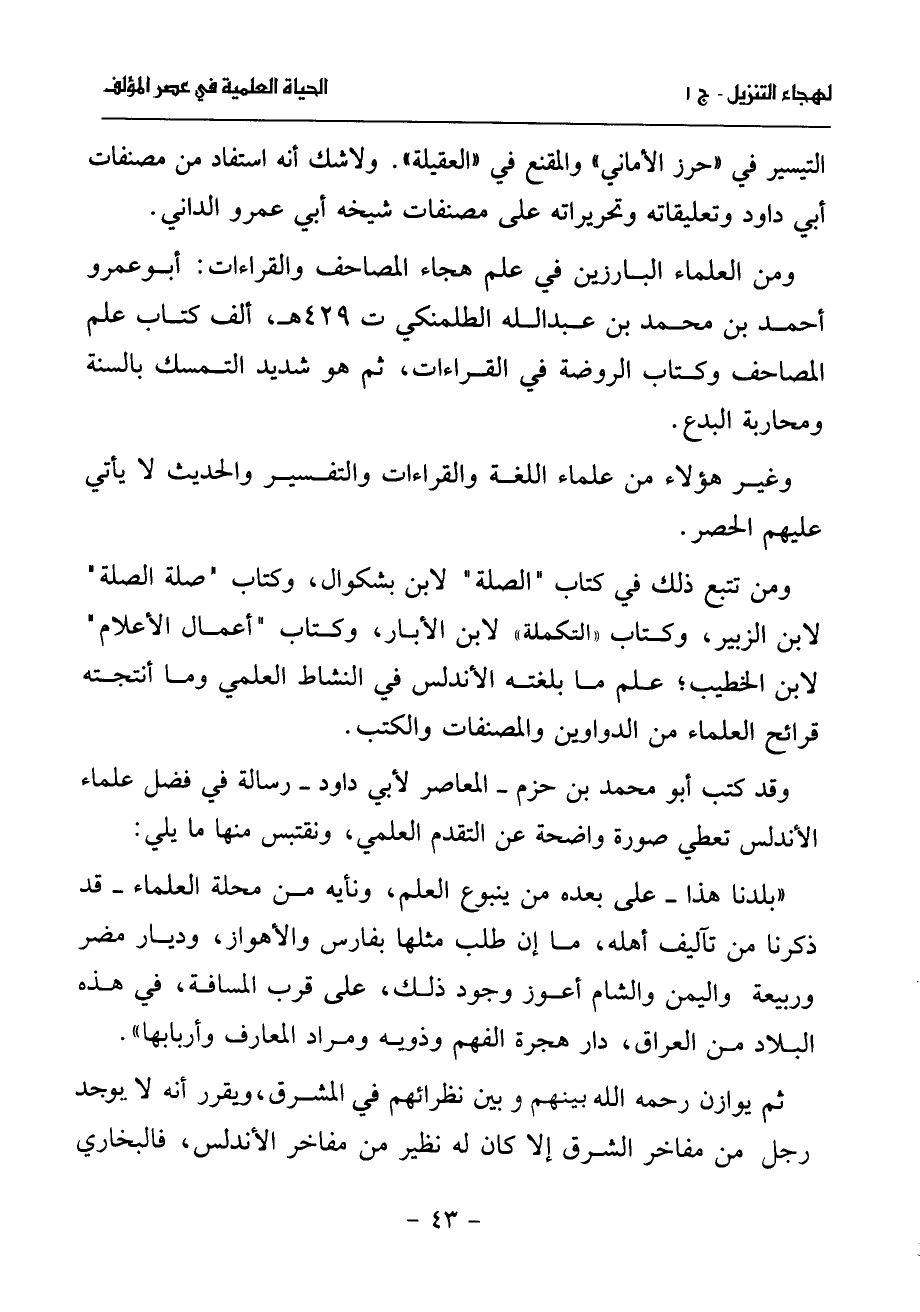 وقد كتب أبو محمد بن حزم- المعاصر لأبي داود- رسالة في فضل علماء الأندلس تعطي صورة واضحة عن التقدم العلمي، ونقتبس منها ما يلي: