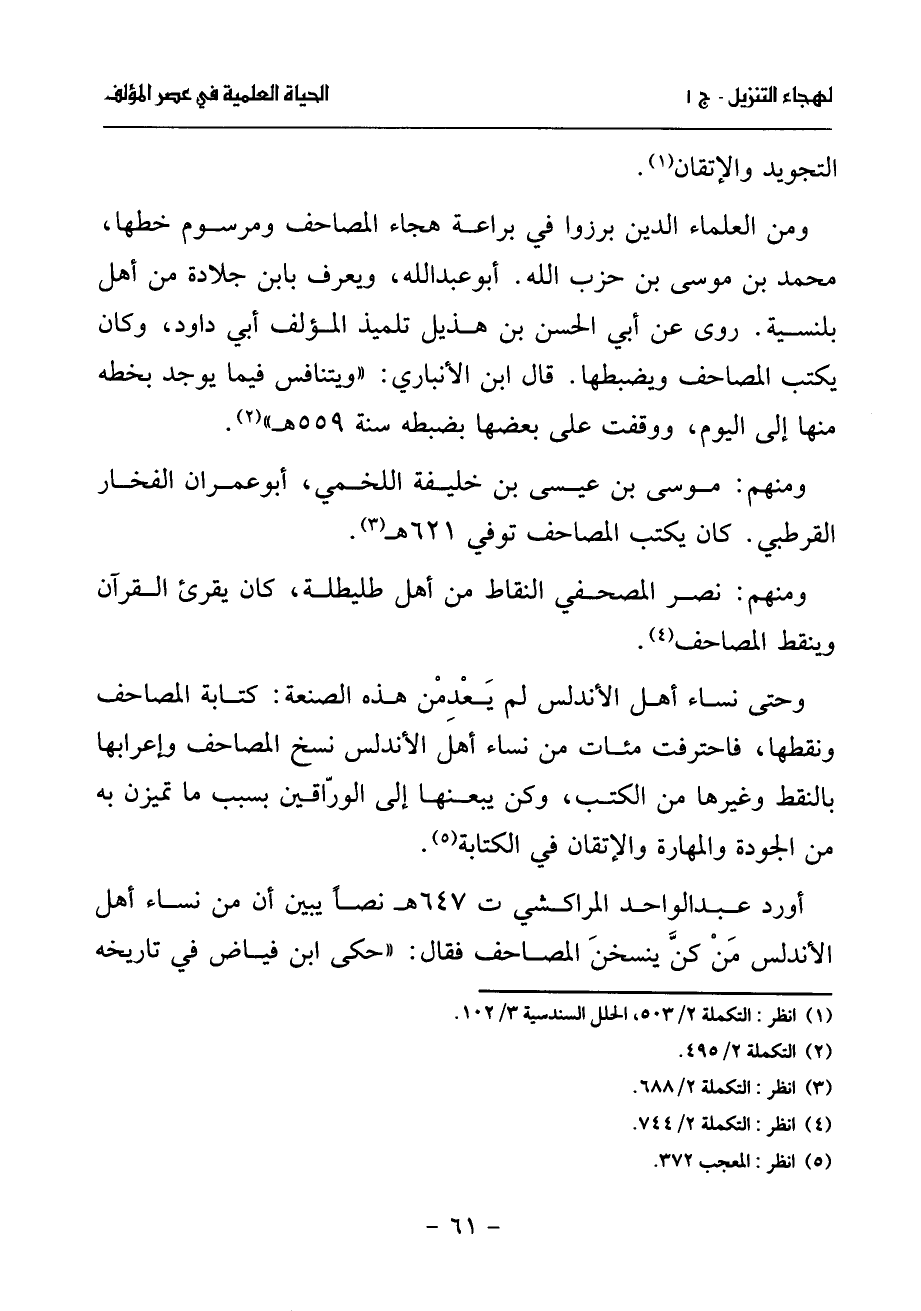 ومنهم: موسى بن عيسى بن خليفة اللخمي، أبو عمران الفخار القرطبي. كان يكتب المصاحف توفي 621 هـ (¬3).