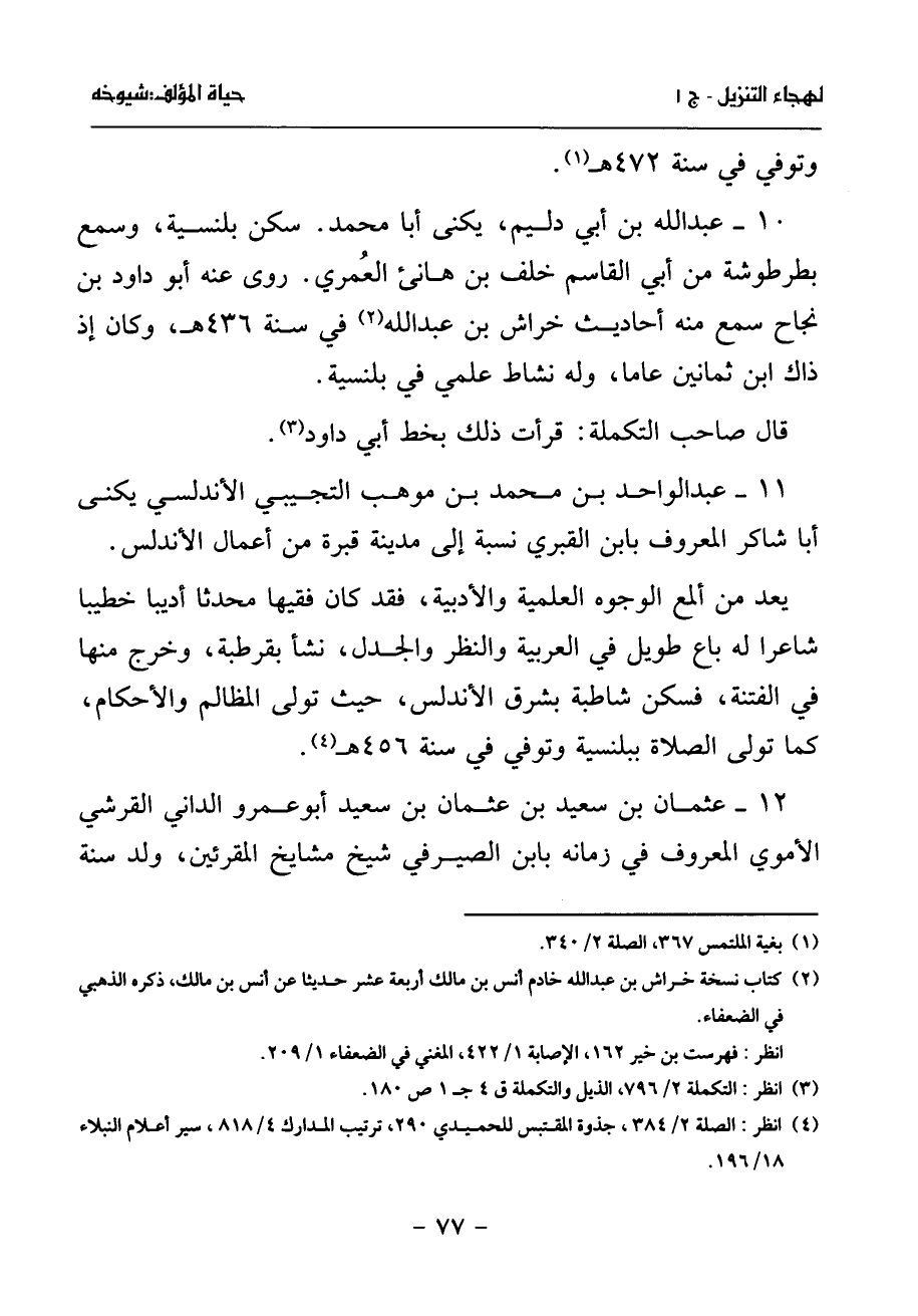 11 - عبد الواحد بن محمد بن موهب التجيبي الأندلسي يكنى أبا شاكر المعروف بابن القبري نسبة إلى مدينة قبرة من أعمال الأندلس.