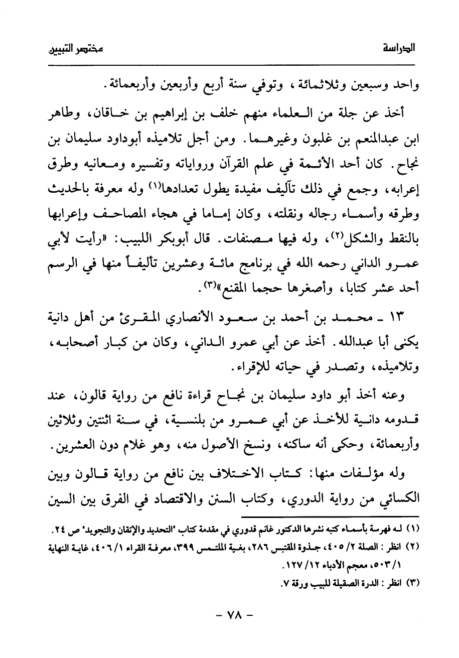 13 - محمد بن أحمد بن سعود الأنصاري المقرئ من أهل دانية يكنى أبا عبد الله. أخذ عن أبي عمرو الداني، وكان من كبار أصحابه، وتلاميذه، وتصدر في حياته للإقراء.