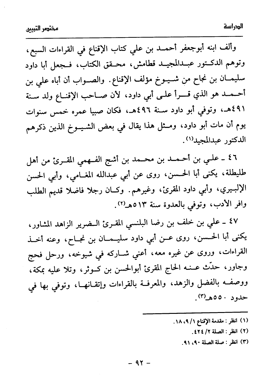 (¬1) انظر: مقدمة الإقناع 1/ 9، 18.