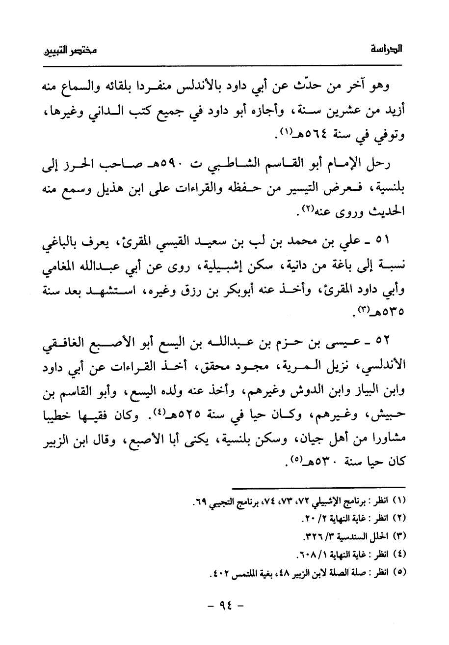 (¬1) انظر: برنامج الإشبيلي 72، 73، 74، برنامج التجيبي 69.