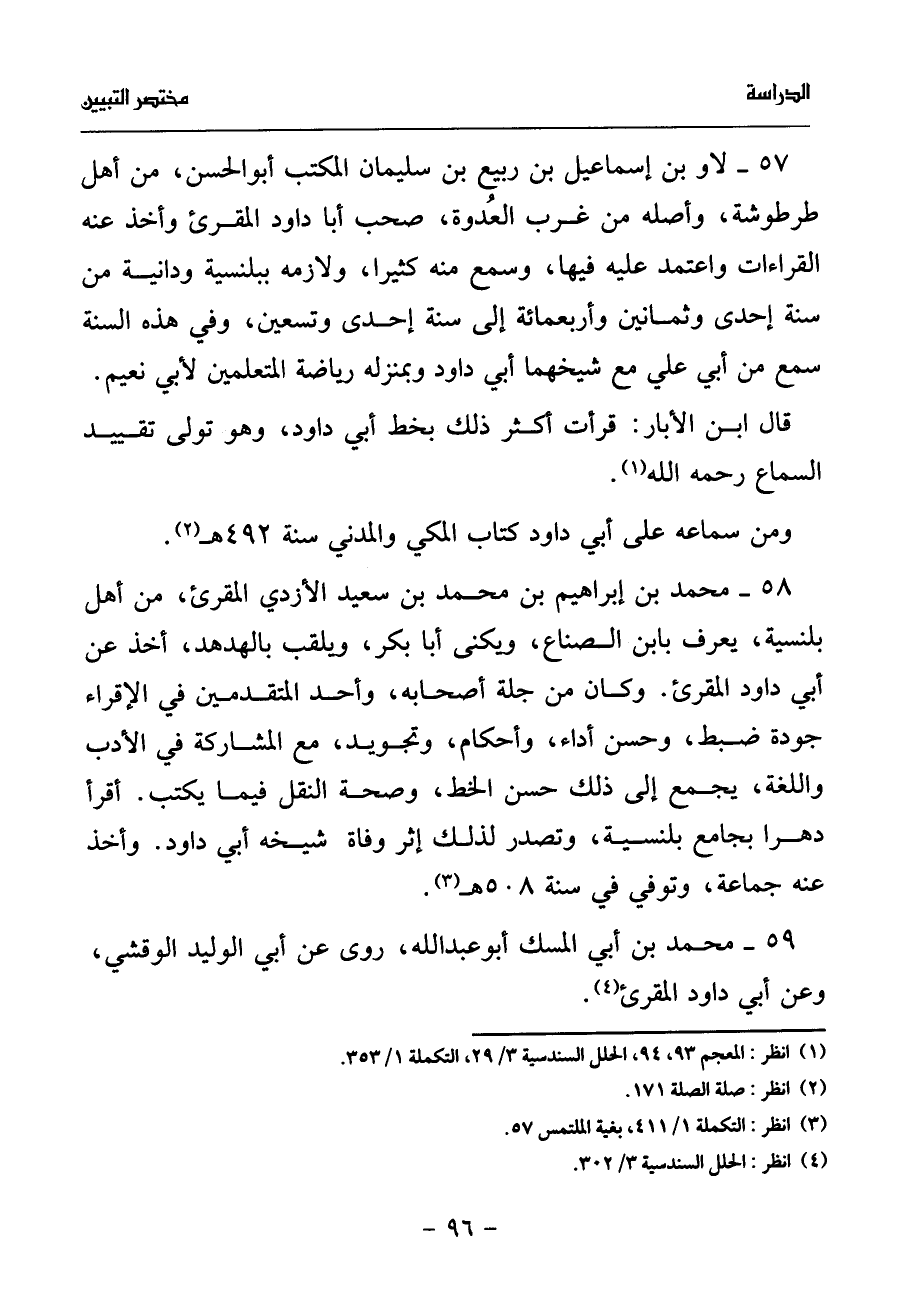 (¬1) انظر: المعجم 93، 94، الحلل السندسية 3/ 29، التكملة 1/ 353.
