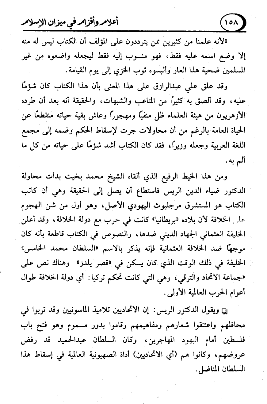 ومن هذا الخيط الرفيع الذي ألقاه الشيخ محمد بخيت بدأت محاولة الدكتور ضياء الدين الريس فاستطاع أن يصل إلى الحقيقة وهي أن كاتب الكتاب هو المستشرق مرجليوث اليهودي الأصل، وهو أول من شن الهجوم على الخلافة لأن بلاده "بريطانيا" كانت في حرب مع دولة الخلافة، وقد أعلن الخليفة العثماني الجهاد الديني ضدها، والنصوص في الكتاب قاطعة بأنه كان موجهًا ضد الخلافة العثمانية فإنه يذكر بالاسم "السلطان محمد الخامس" الخليفة في ذلك الوقت الذي كان يسكن في "قصر يلدز" وهناك نص على "جماعة الأتحاد والترقي، وهي التي كانت تحكم تركيا: أي دولة الخلافة طوال أعوام الحرب العالمية الأولى.