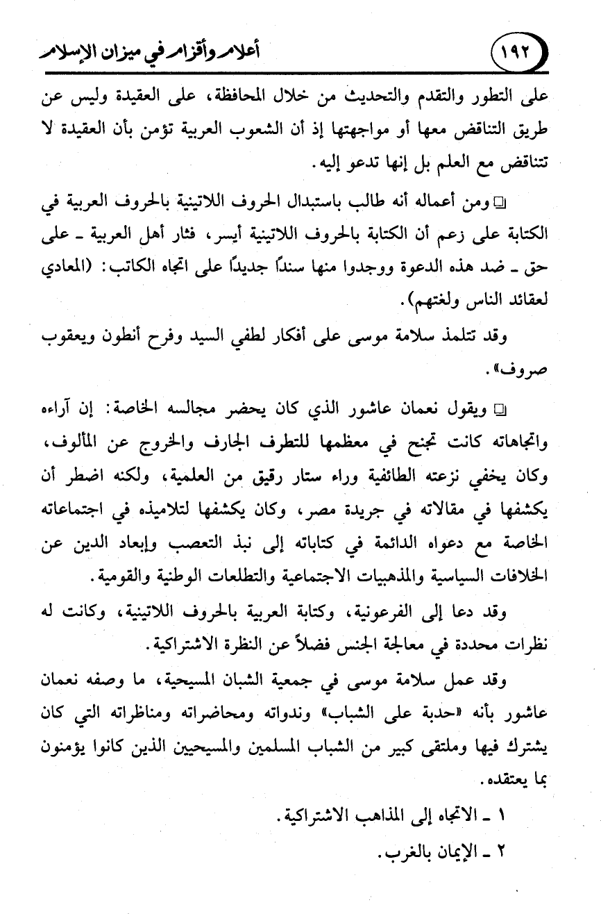 ومن أعماله أنه طالب باستبدال الحروف اللاتينية بالحروف العربية في الكتابة على زعم أن الكتابة بالحروف اللاتينية أيسر، فثار أهل العربية -على حق- ضد هذه الدعوة ووجدوا منها سندًا جديدًا على اتجاه الكاتب: (المعادي لعقائد الناس ولغتهم).