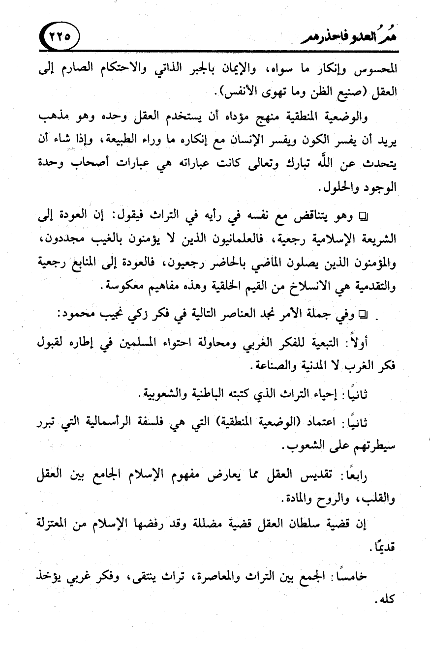 خامسًا: الجمع بين التراث والمعاصرة، تراث ينتقى، وفكر غربي يؤخذ كله.
