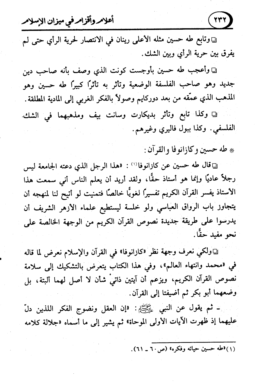 * طه حسين وكازانوفا والقرآن: