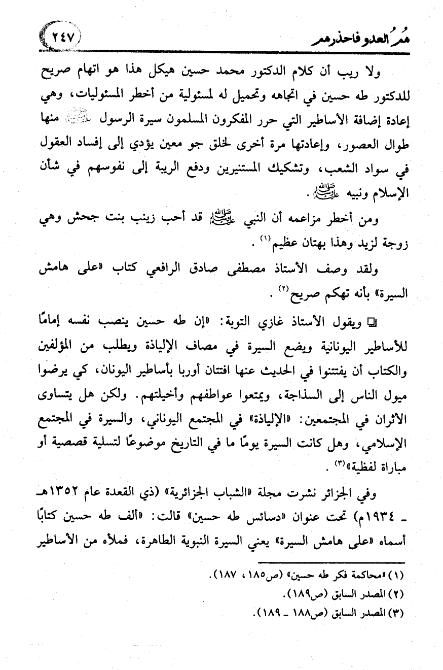 (1) "محاكمة فكر طه حسين" (ص 185، 187).