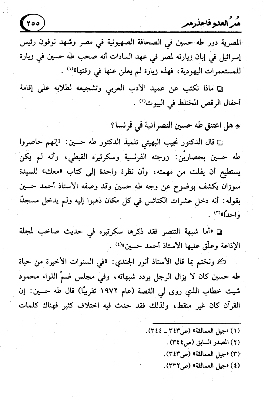 - "أما شبهة التنصر فقد ذكرها سكرتيره في حديث صاخب لمجلة الإذاعة وعلّق عليها الأستاذ أحمد حسين" (4).