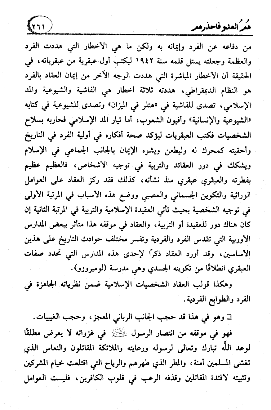 وهكذا قولب العقاد الشخصيات الإسلامية ضمن نظرياته الجاهزة في الفرد والطوابع الفردية.