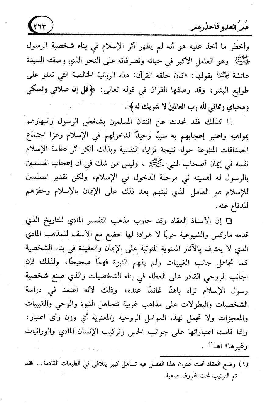 (1) وضع العقاد تحت عنوان هذا الفصل فيه تساهل كبير يتلافى في الطبعات القادمة .. فقد تم الترتيب تحت ظروف صعبة.