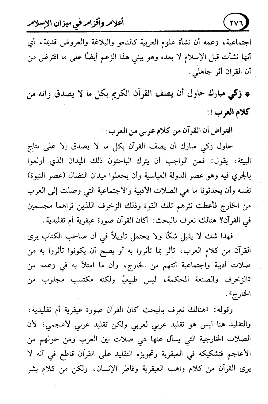 * زكي مبارك حاول أن يصف القرآن الكريم بكل ما لا يصدق وأنه من كلام العرب!!