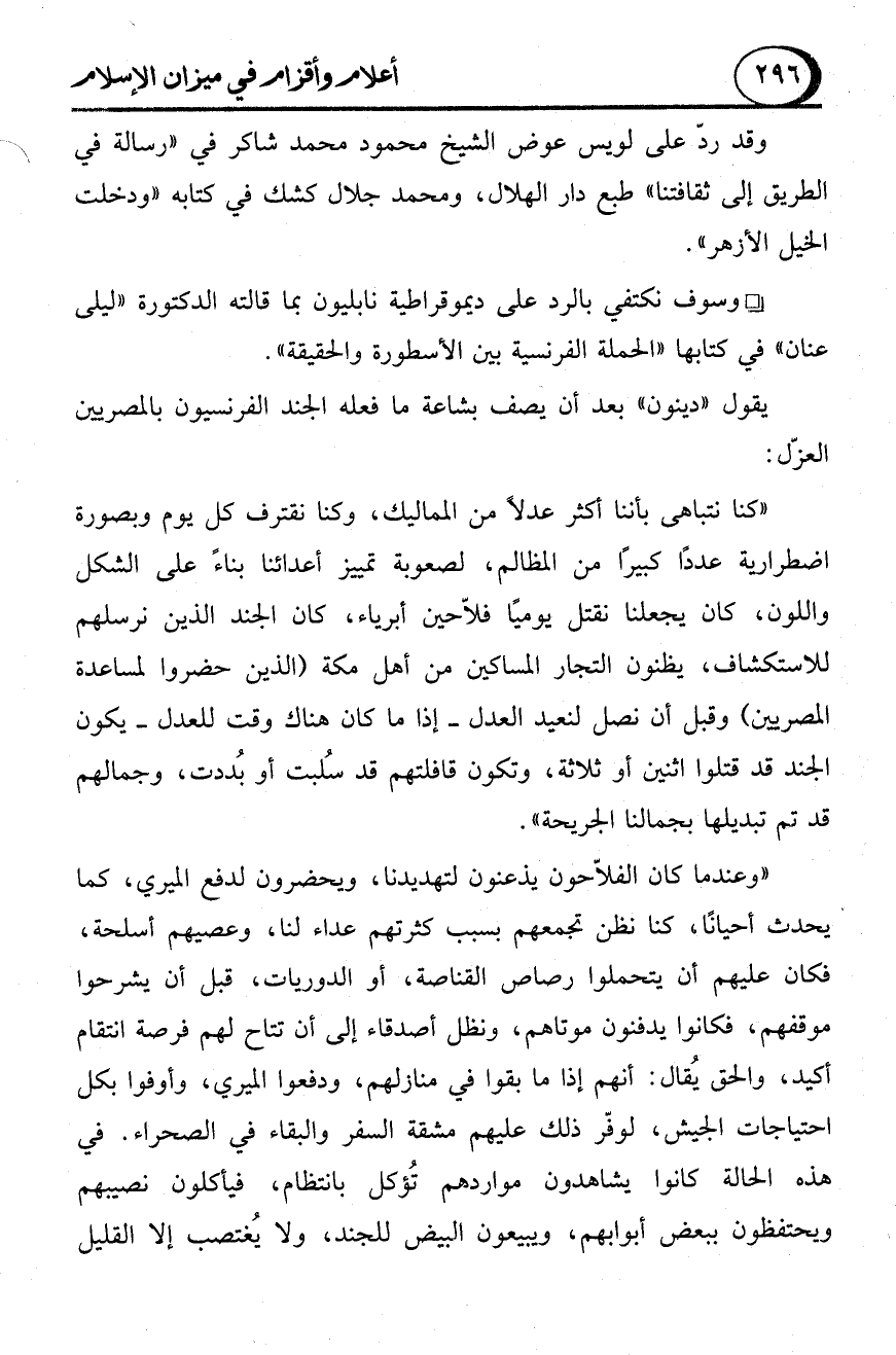 - وسوف نكتفي بالرد على ديموقراطية نابليون بما قالته الدكتورة "ليلى عنان" في كتابها "الحملة الفرنسية بين الأسطورة والحقيقة".