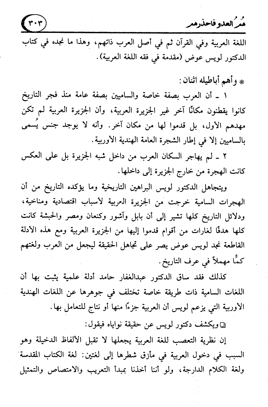 اللغة العربية وفي القرآن ثم في أصل العرب ذاتهم، وهذا ما نجده في كتاب الدكتور لويس عوض (مقدمة في فقه اللغة العربية).