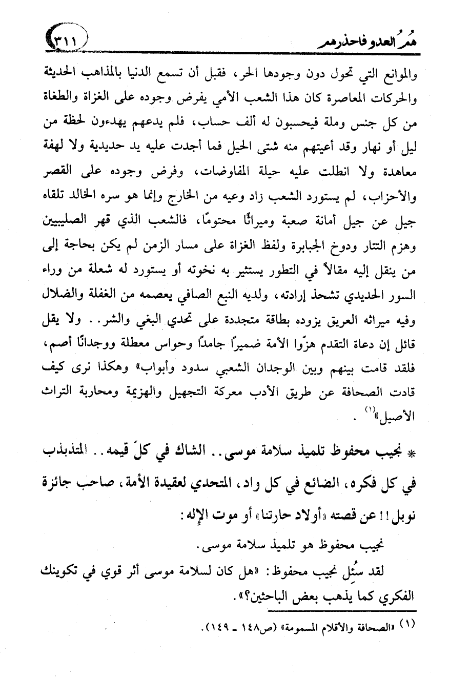 (1) "الصحافة والأقلام المسمومة" (ص 148 - 149).