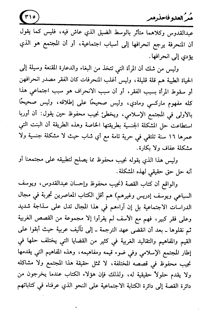 وليس هذا الذي يقوله نجيب محفوظ مما يصلح لتطبيقه على مجتمعنا أو
