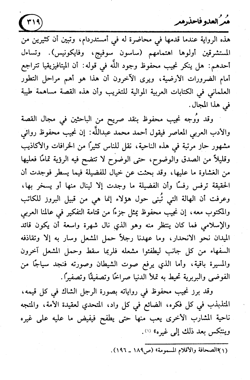 (1) "الصحافة والأقلام المسمومة" (ص 189 - 196).