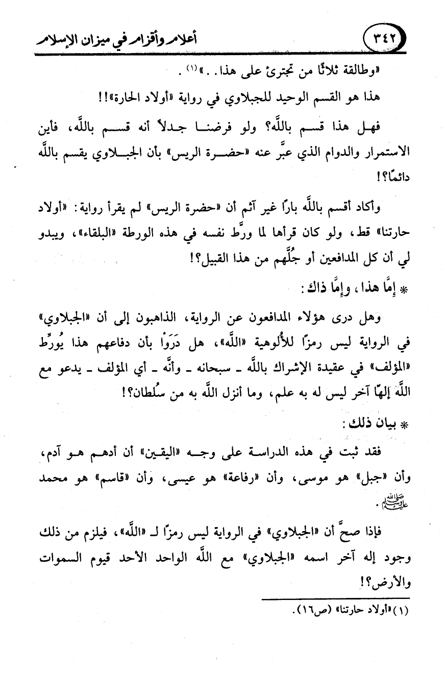 (1) "أولاد حارتنا" (ص 16).