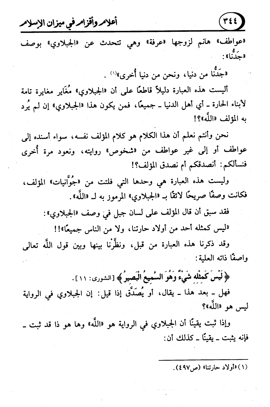 فقد سبق أن قال المؤلف على لسان جبل في وصف " الجبلاوي ": "ليس كمثله أحد من أولاد حارتنا، ولا من الناس جميعًا"!!