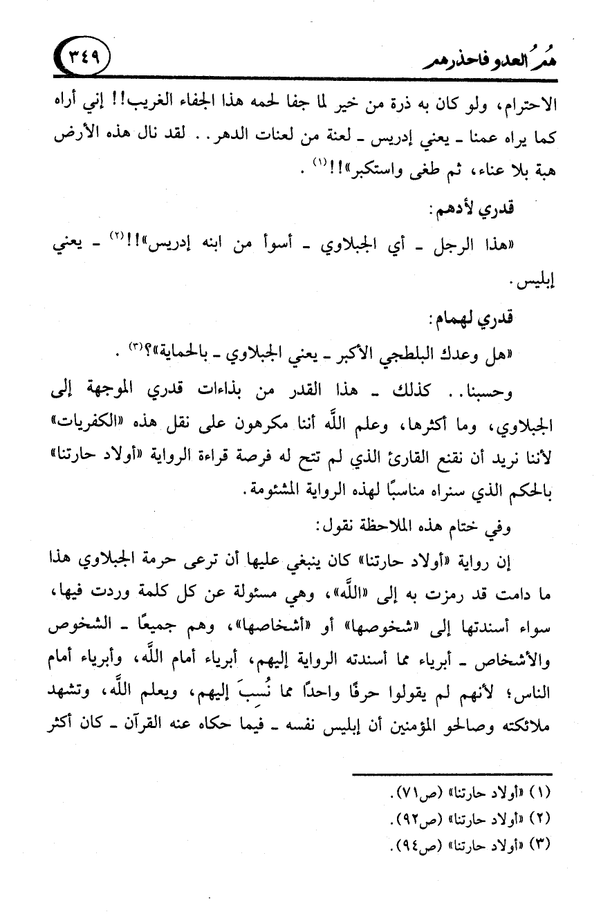 "هذا الرجل -أي الجبلاوي- أسوأ من ابنه إدريس"!! (2) - يعني إبليس.
