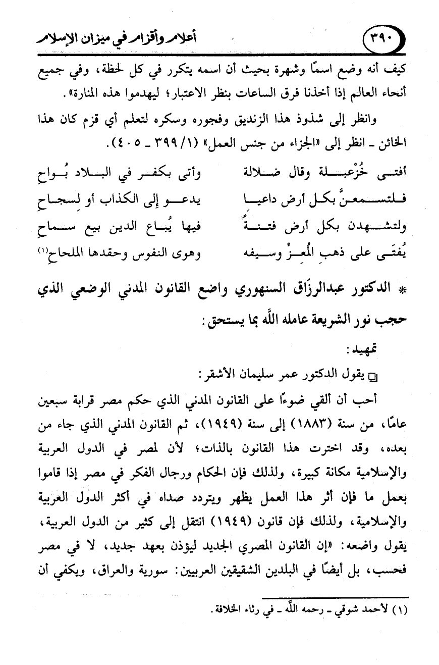 * الدكتور عبد الرزّاق السنهوري واضع القانون الدني الوضعي الذي حجب نور الشريعة عامله الله بما يستحق: