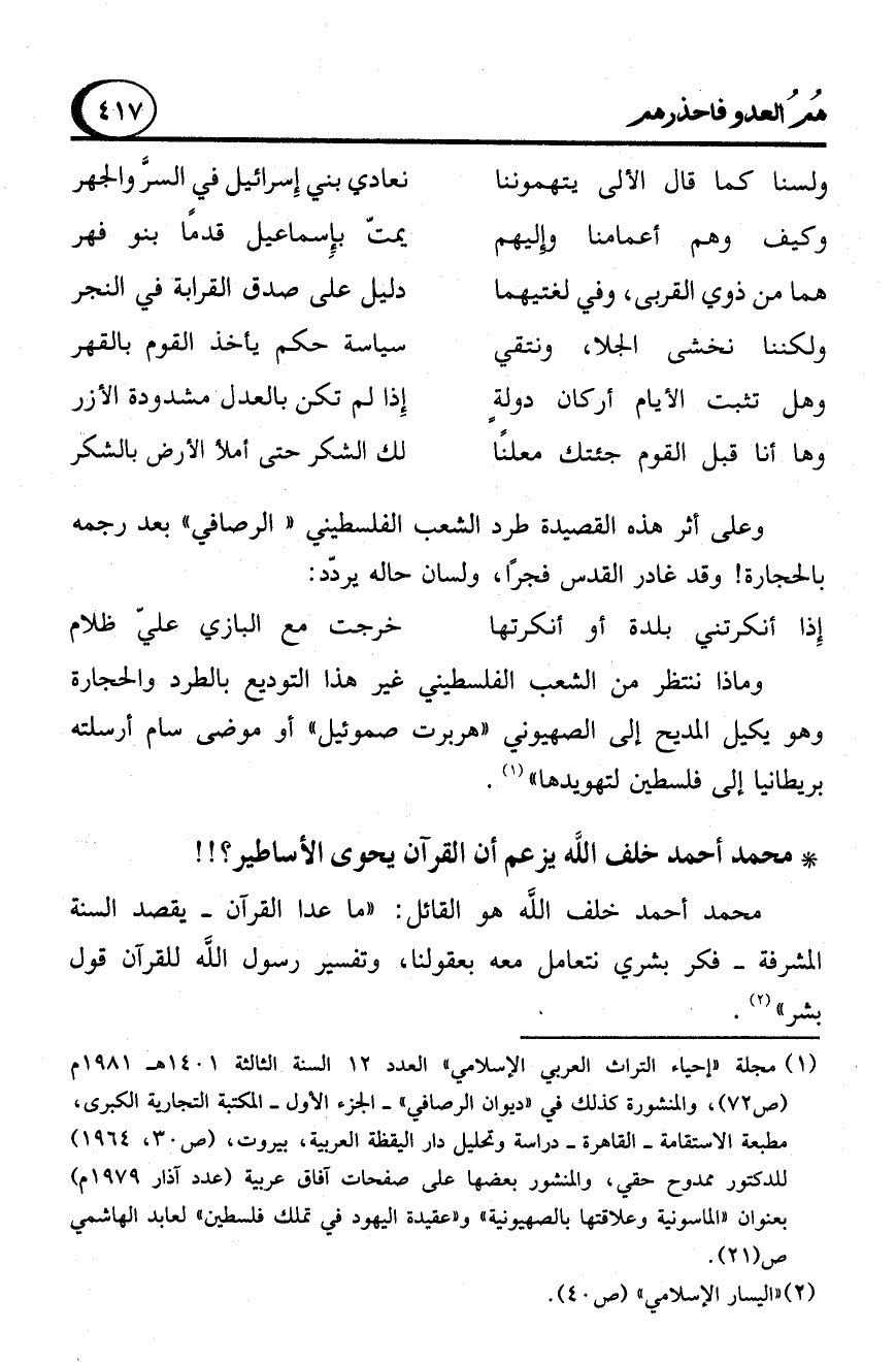 ولسنا كما قال الألى يتهموننا ... نعادى بني إِسرائيل في السرَّ والجهر