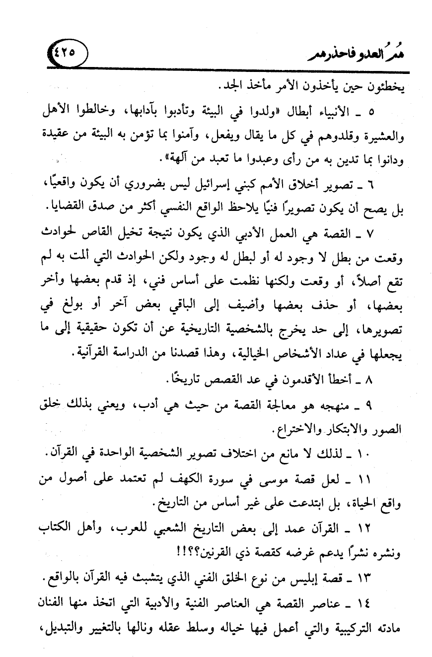 6 - تصوير أخلاق الأمم كبني إسرائيل ليس بضروري أن يكون واقعيًا، بل يصح أن يكون تصويرًا فنيًا يلاحظ الواقع النفسي أكثر من صدق القضايا.