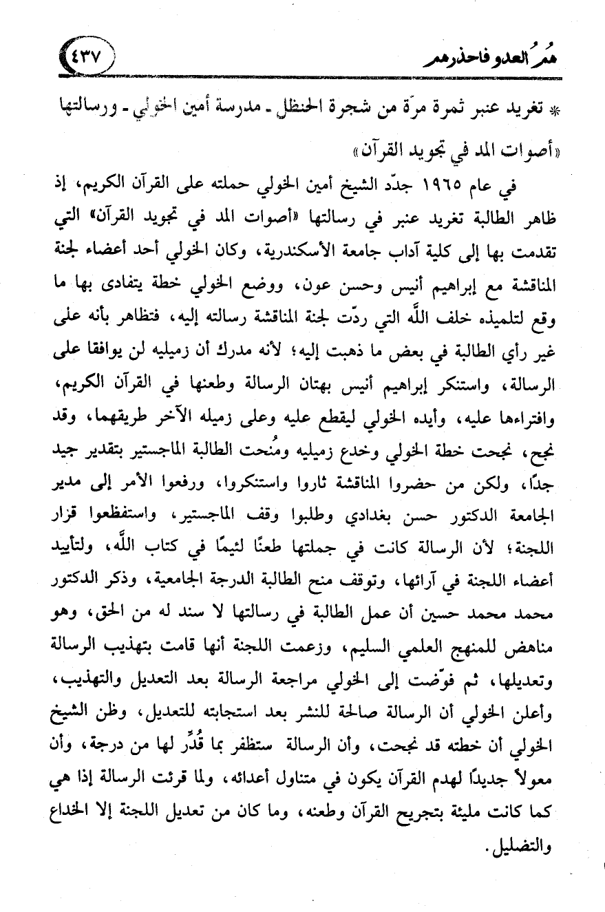 * تغريد عنبر ثمرة من شجرة الحنظل -مدرسة أمين الخولي - ورسالتها "أصوات المد في تجويد القرآن"
