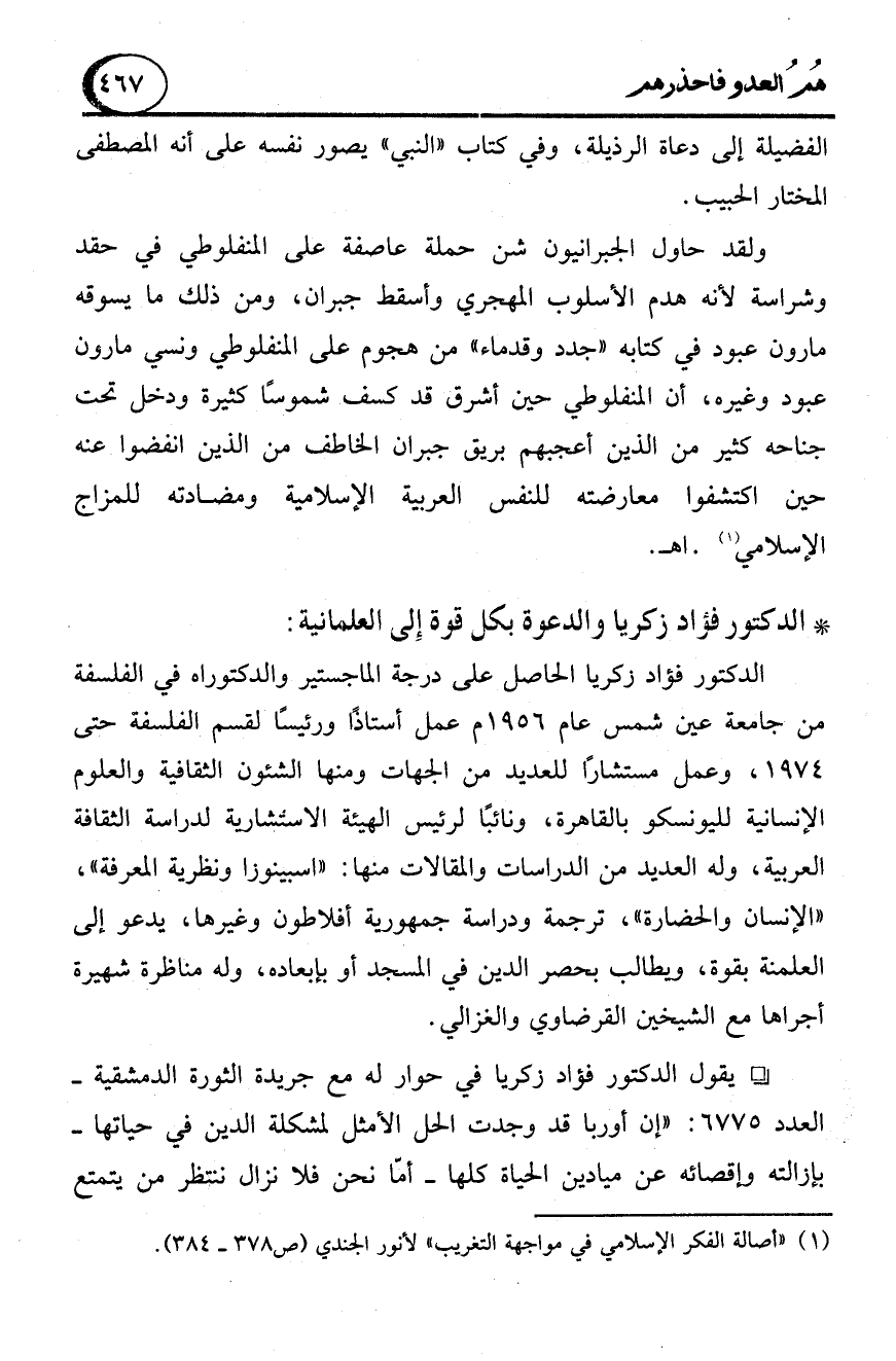 * الدكتور فؤاد زكريا والدعوة بكل قوة إلى العلمانية: