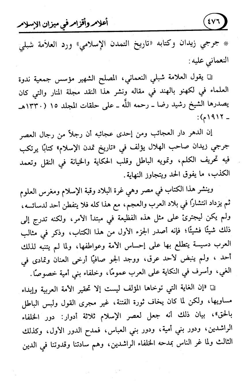 * جرجي زيدان وكتابه "تاريخ التمدن الإِسلامي" ورد العلاّمة شبلي النعماني عليه: