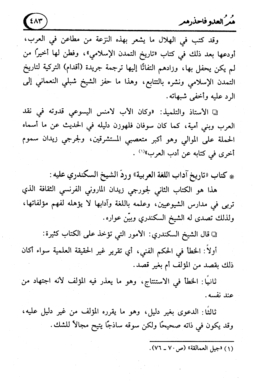 * كتاب "تاريخ آداب اللغة العربية" وردّ الشيخ السكندري عليه: