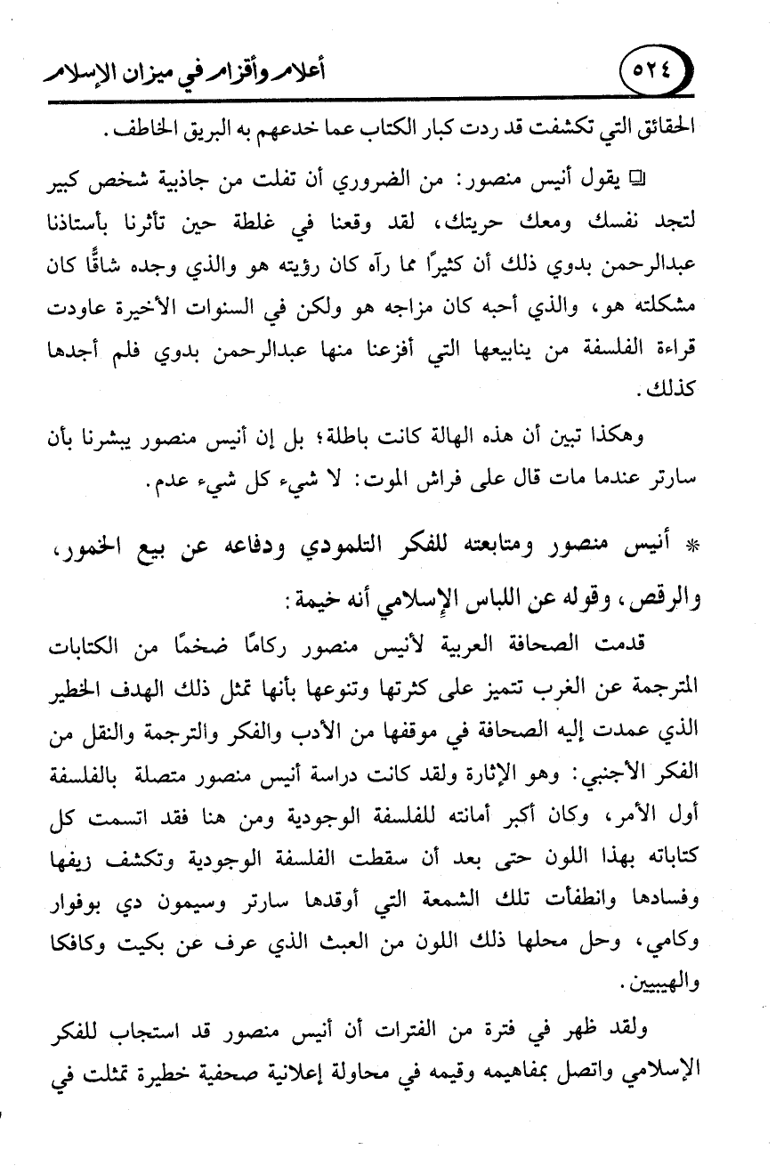 * أنيس منصور ومتابعته للفكر التلمودي ودفاعه عن بيع الخمور، والرقص، وقوله عن اللباس الإسلامي أنه خيمة: