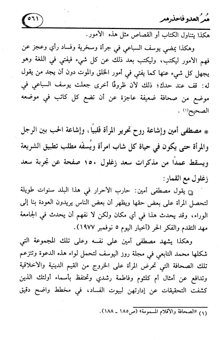 (1) "الصحافة والأقلام السمومة" (ص 185 - 188).