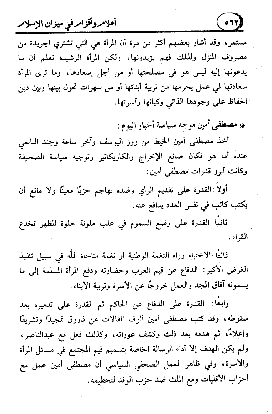 مستمر، وقد أشار بعضهم أكثر من مرة أن المرأة هي التي تشتري الجريدة من مصروف المنزل ولذلك فهم يؤيدونها، ولكن المرأة الرشيدة تعلم أن ما يدعونها إليه ليس هو في مصلحتها أو من أجل إسعادها، وما ترى المرأة سعادتها في عمل يحرمها من تربية أبنائها أو من سهرات تحول بينها وبين دين الحفاظ على وجودها الذاتي وكيانها وأسرتها.